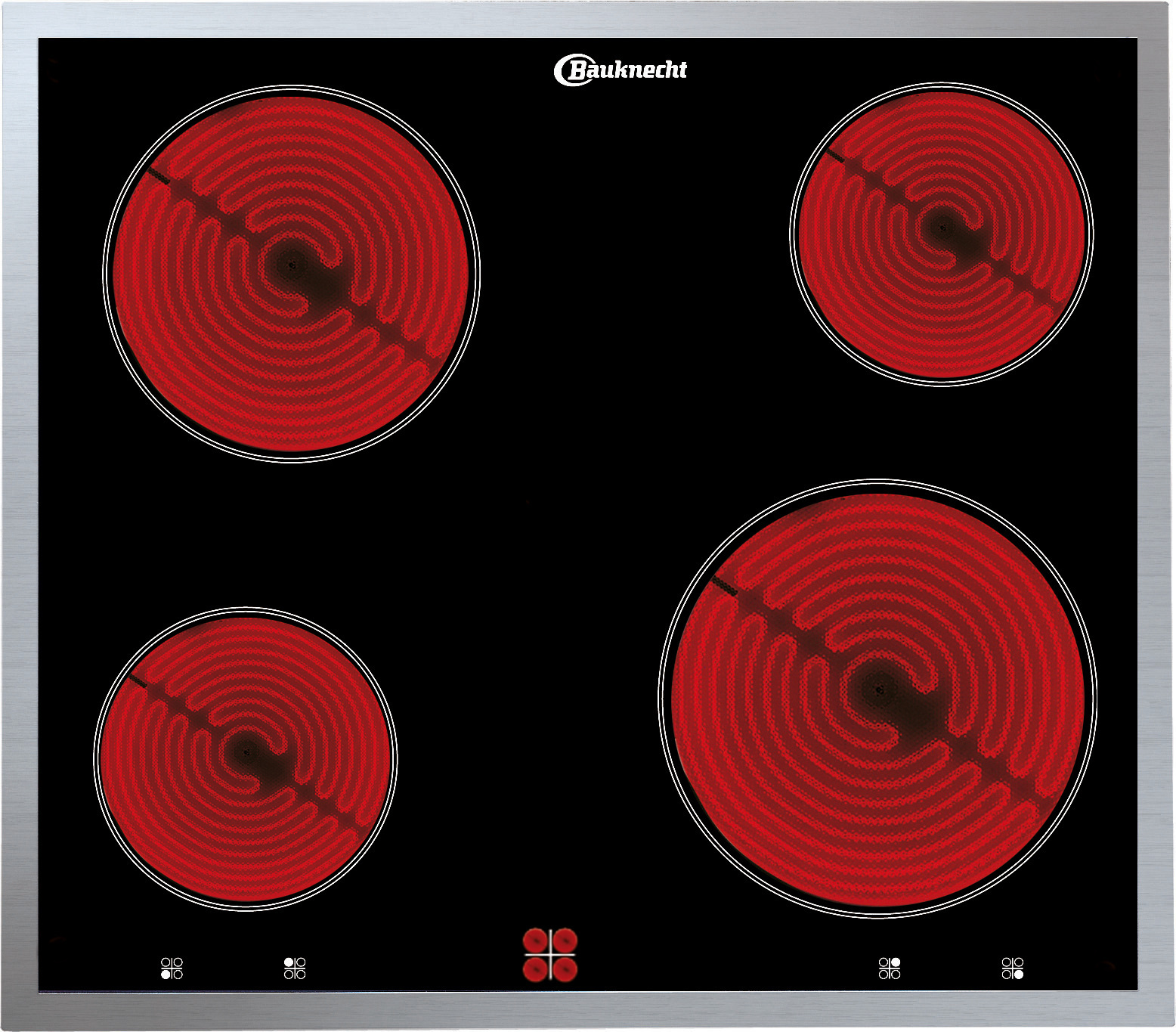 Glaskeramik-Kochfeld, Flachrahmen, 60 cm, Gesamt-Anschlusswert: 6,2 kW, Einbauhöhe: 52 mm, Ausschnittmasse (BxT): 56,0×49,0 cm, 4-fach Restwärmeanzeige, 4 Kochzonen, Energiegeregelt, kombinierbar mit dem Einbau-Herd HVK3 NN8F IN