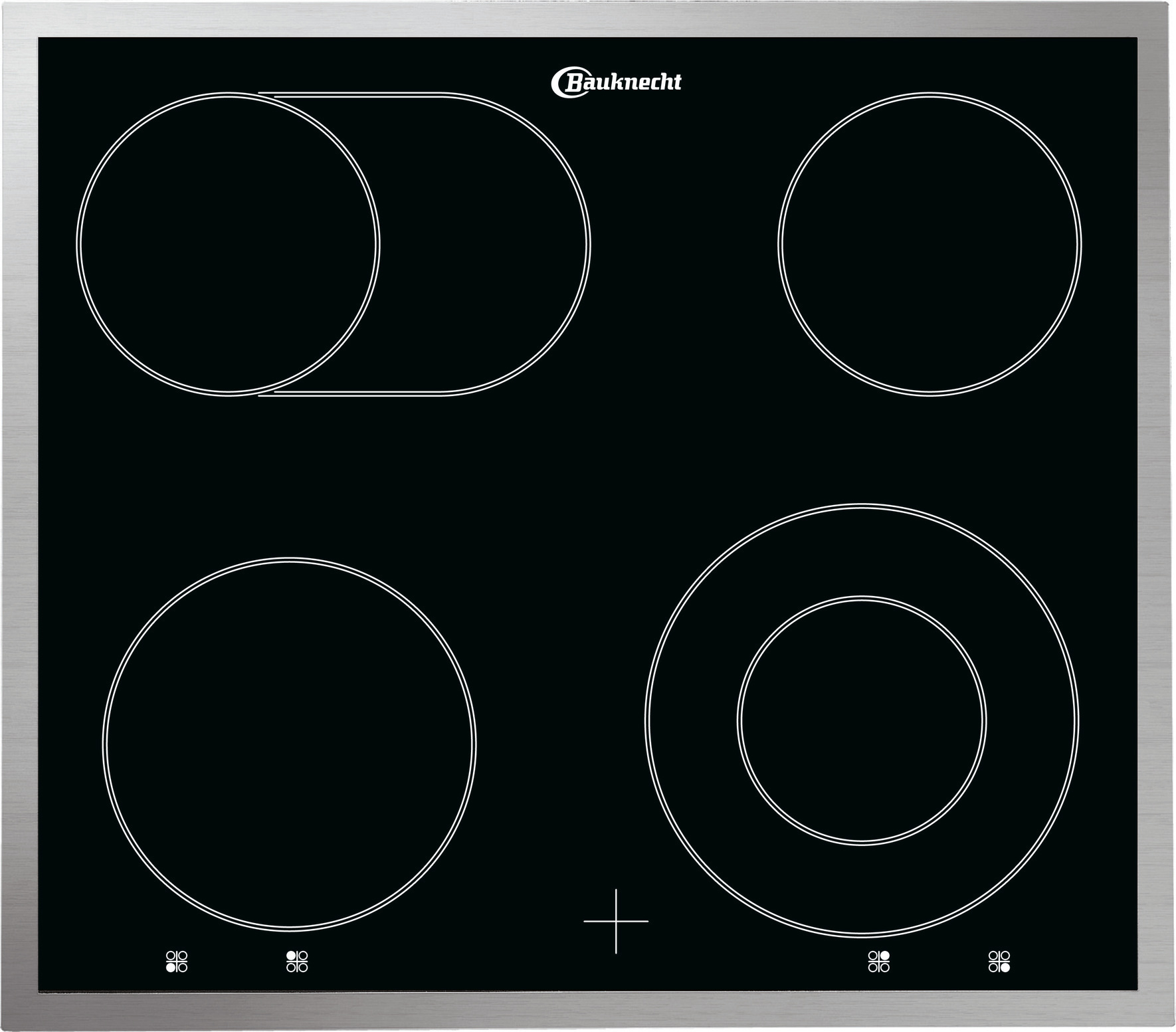Glaskeramik-Kochfeld, Flachrahmen, 60 cm, Gesamt-Anschlusswert: 7,0 kW, Einbauhöhe: 52 mm, Ausschnittmasse (BxT): 56,0×49,0 cm, 4-fach Restwärmeanzeige, 4 Kochzonen, davon 1 Bräter-Zweikreis-Kochzone, 1 DUO-Zweikreis-Kochzone, Energiegeregelt